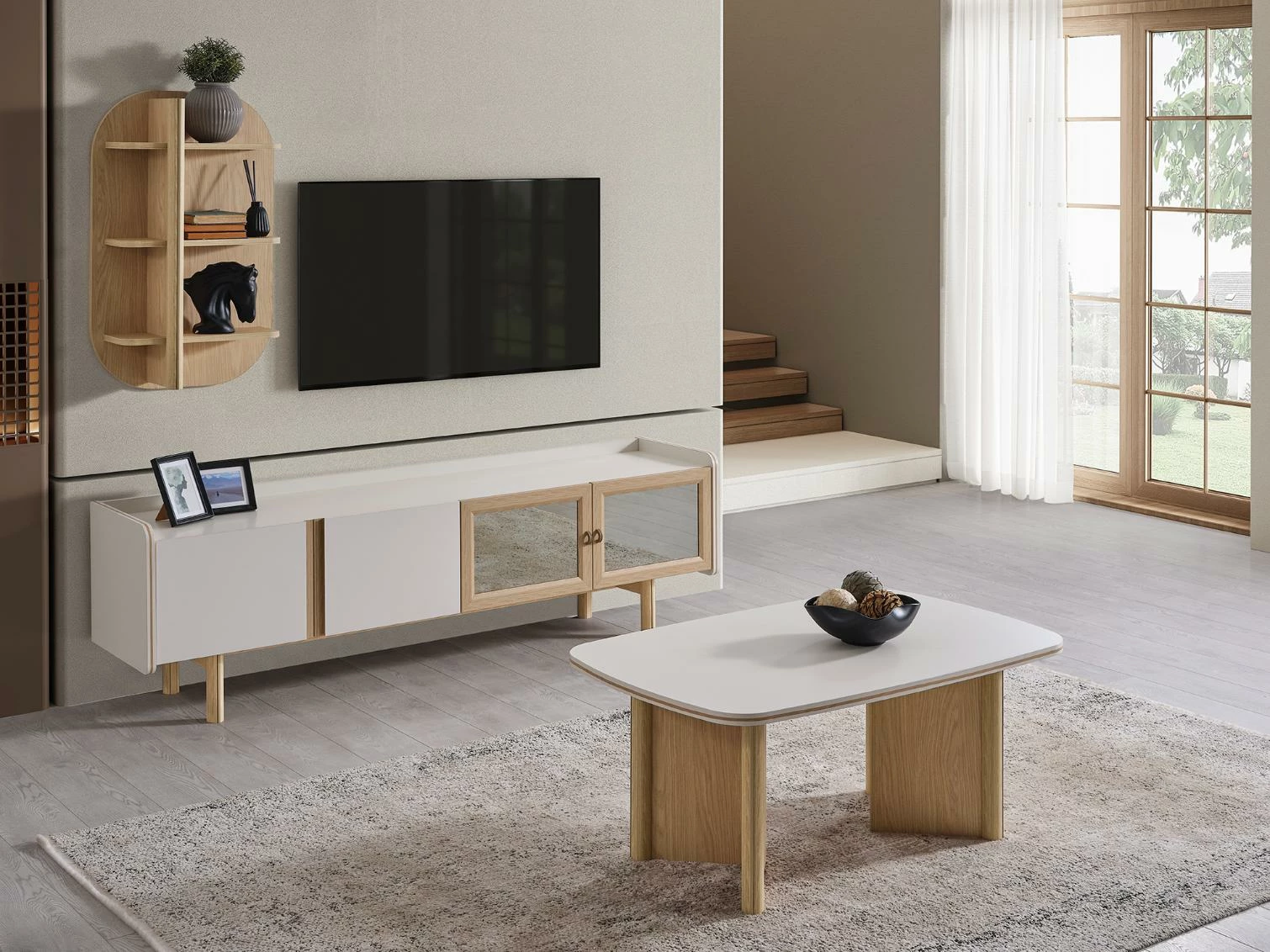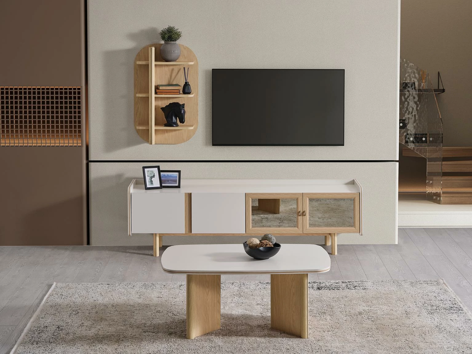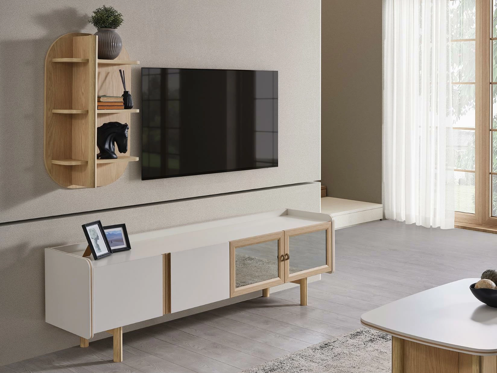 Ales TV ünitesi, minimalist çizgileri ve modern detaylarıyla dikkat çeken bir tasarıma sahiptir. Zamansız bir şıklık sunan bu ünite, farklı iç mekan stillerine uyum sağlayacak şekilde tasarlanmıştır. Doğal renk tonları ve zarif detaylar, oturma alanınıza sofistike bir hava katacaktır.