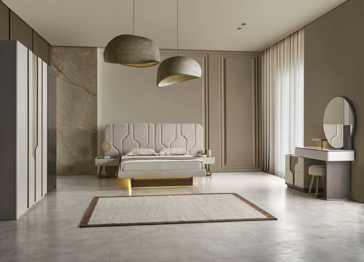 Dağınıklıktan uzak, düzenli bir yaşam alanı için geniş depolama alanları sunan Ada Ceviz Modern Yatak Odası, gardırop, şifonyer ve komodinleri ile tüm eşyalarınızı düzenli bir şekilde saklamanıza olanak tanır. Akıllı depolama çözümleriyle yaşam alanınız daha ferah ve düzenli görünür.